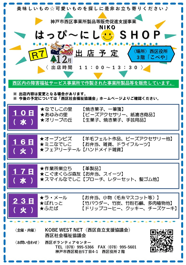 12月23日、はっぴ~にしNIKOSHOPに参加します!