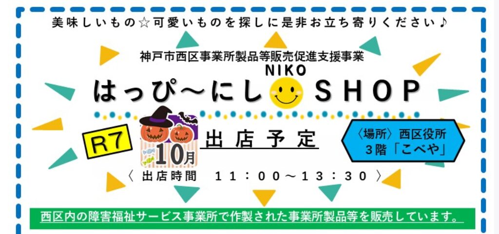 10月、はっぴ~にしNIKOSHOPに参加します!