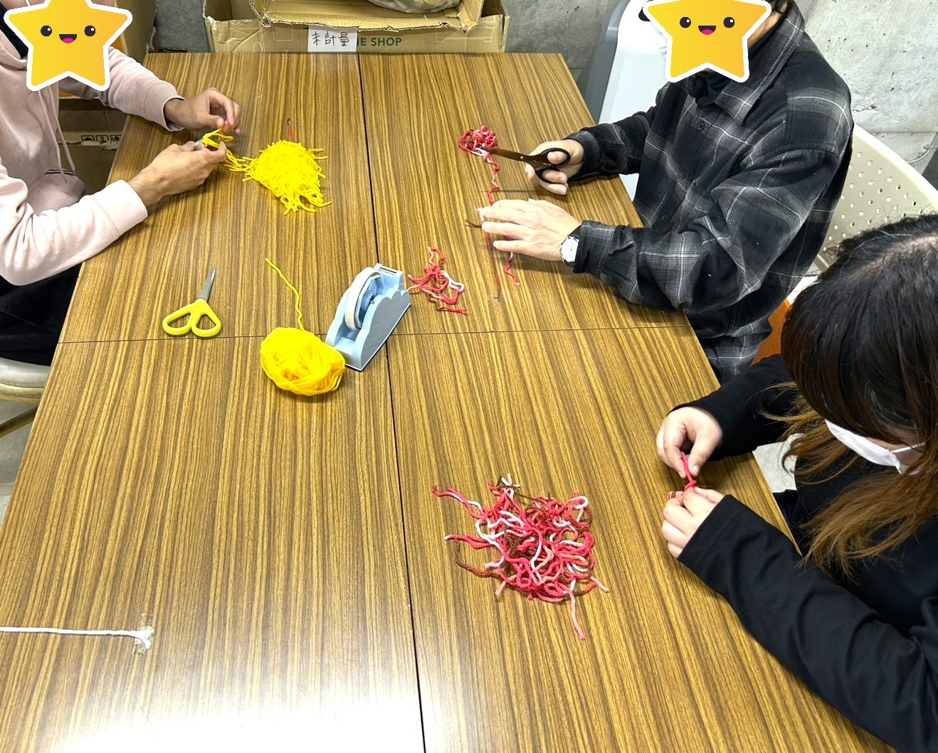 ラ・メール作業場では、12月23日(火)のはっぴ~にしNIKOSHOPに向けて、小物を頑張って作っています! クリスマスとお正月を目前にして、張り切っていますよ~