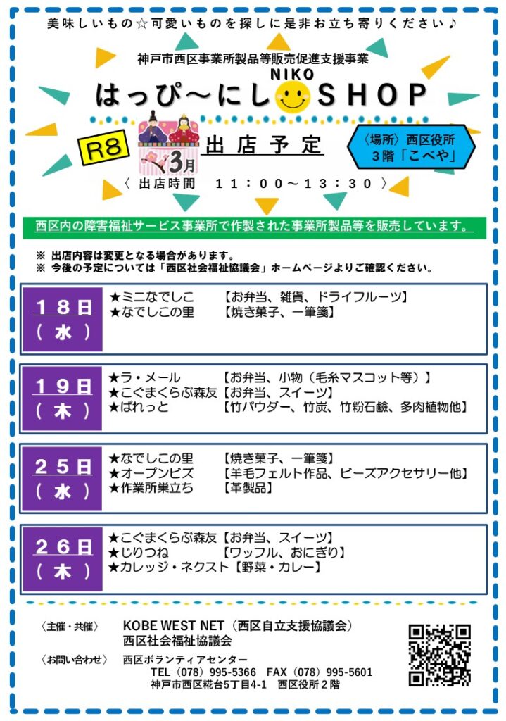 作業場の様子 & 販売会参加予告! 2026.3.16 就労継続支援B型 新しい作業が始まりました😀 支援員も利用者さんたちも、真剣な表情で取り組んでいます🤨 就Bラ・メールでは、他にも何種類も仕事があり、ひとりひとりに合った仕事をしていただいてます。ぜひお問い合わせください。 3月19日は神戸市西区役所で販売会に参加します。ぜひお越しください🚙🚃 前の記事を読む 記事一覧に戻る 次の記事を読む