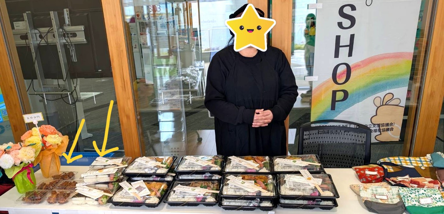 お買い上げいただいたら、利用者さんが、支援員に見守られながらお金の受け渡しをします。緊張!